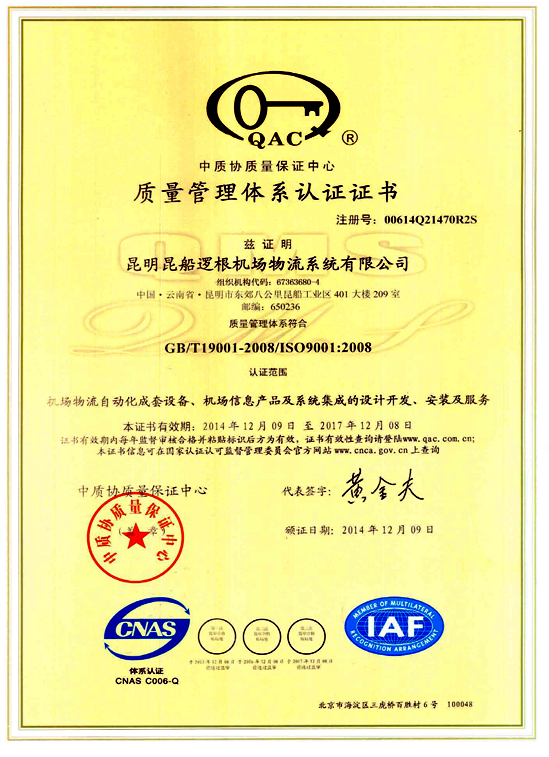 ISO質量體系認證證書